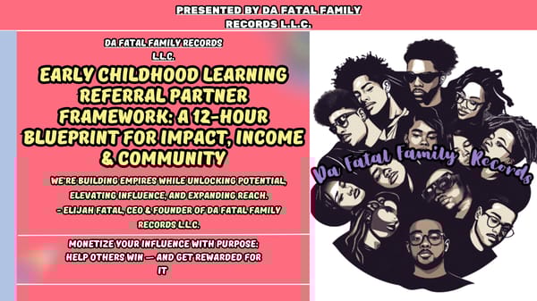 At the heart of this opportunity is the Referral Partner Framework from Da Fatal Family Records L.L.C. — a complete system designed to help you earn with intention while staying rooted in service, clarity, and long-term impact for families and children.